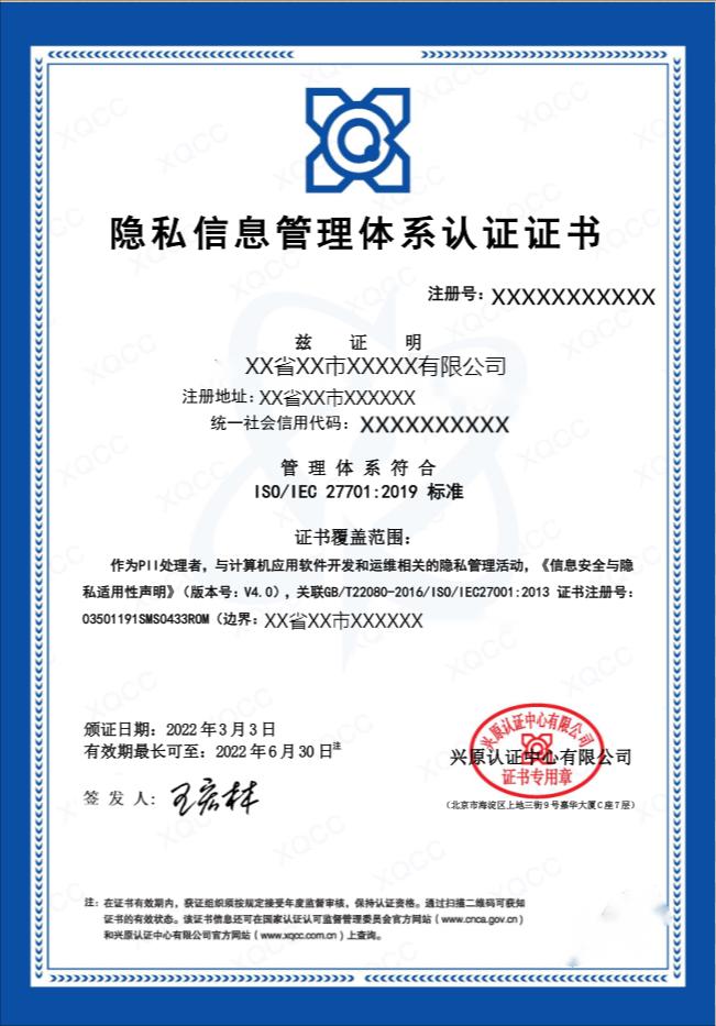(6)通过该认证的组织意味着其隐私信息管理能力达到国际水平。