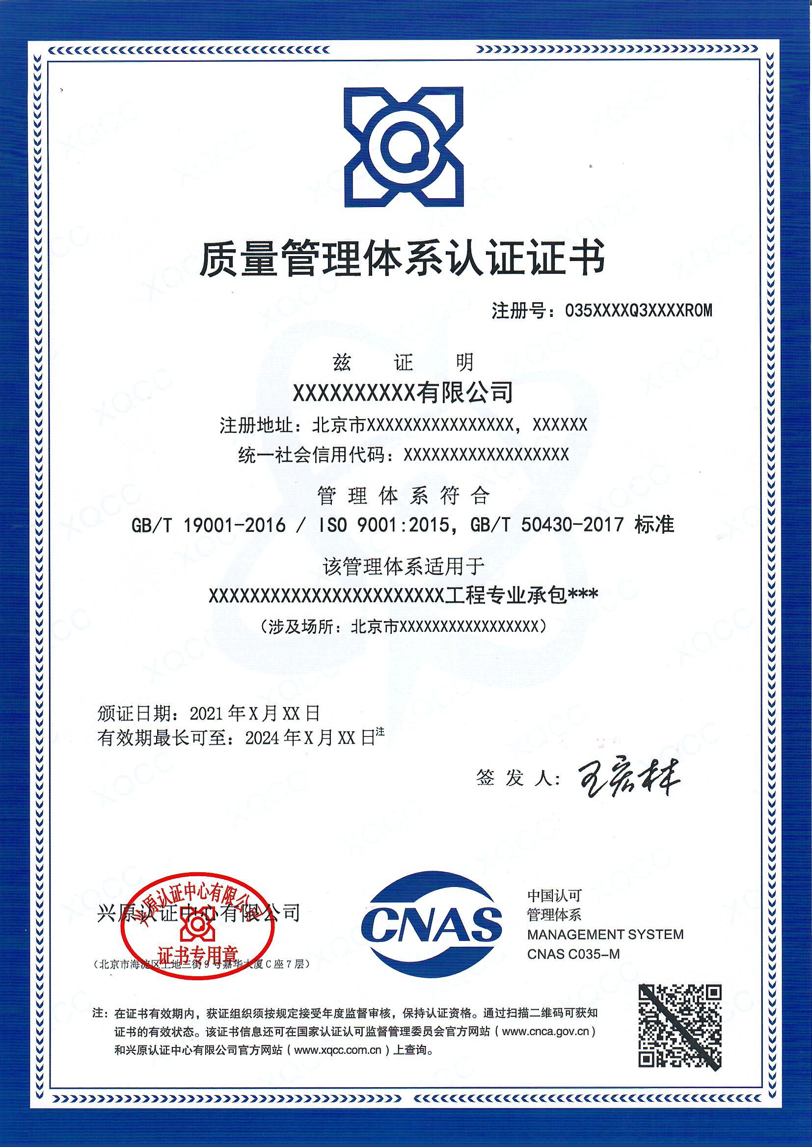 (1)新申请的施工企业(原未经过GB/T19001认证的施工企业)应建立符合《质量管理体系要求》和《规范》要求的文件化管理体系,在申请认证之前应按内部审核方案的要求完成内部审核和管理评审,并保证管理体系有效并充分运行三个月以上