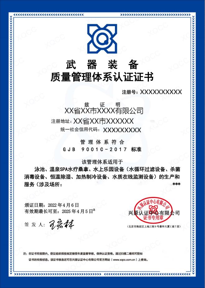 国军标质量管理体系认证(GJB9001C-2017)是国家军用标准,也叫武器装备质量管理体系认证,依据《武器装备质量管理条例》相关规定,武器装备以及用于武器装备的计算机软件、专用元器件、配套产品、原材料都应进行质量管理,武器装备论证、研制、生产、试验和维修单位应当建立健全质量管理体系,对其承担的武器装备论证、研制、生产、试验和维修任务实行有效的质量管理,确保武器装备质量符合要求